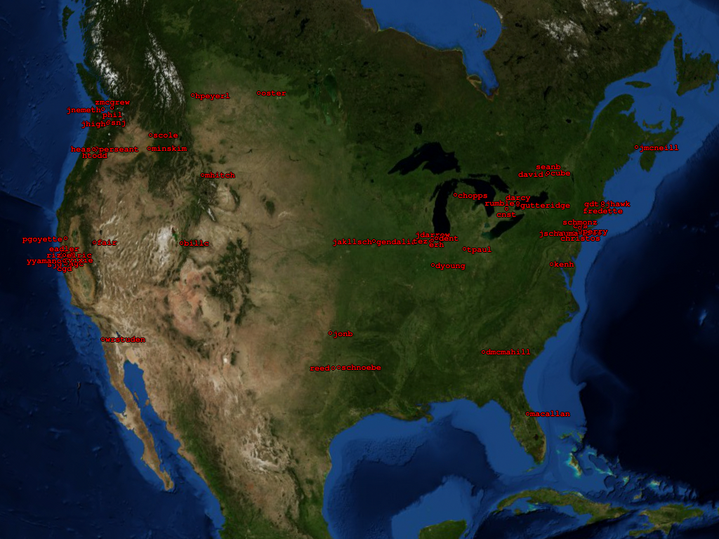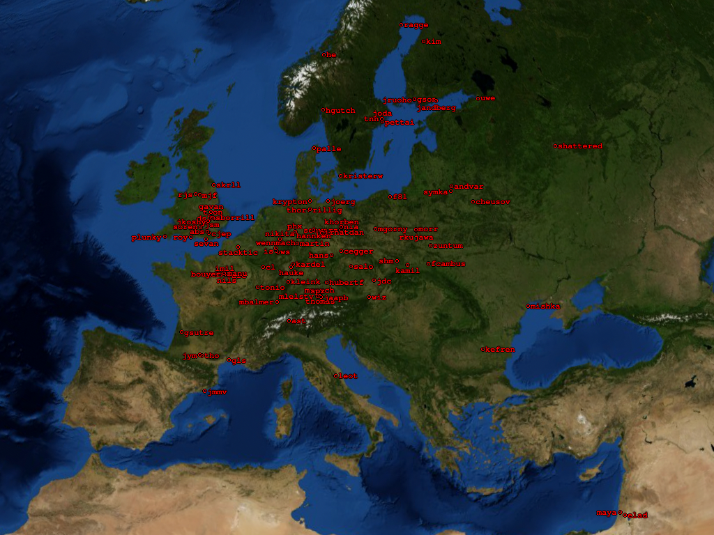 Developers coordinates (xplanet/xglobe markers file)